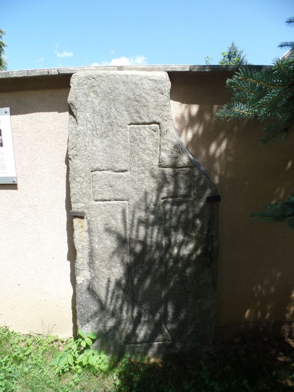 Niegdyś kościół otaczał cmentarz powstały w XV wieku. Przy murze ogradzającym dawną nekropolię - na północ od kościoła - stoi niedokończony krzyż pokutny lub tzw. kamień mordercy. Jest to blok granitowy z obrysem krzyża.