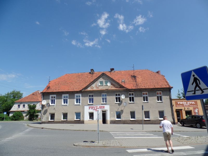 Obecnie jest to budynek mieszkalny, zaś jeszcze do 1945 r. znajdował się tu zajazd „Pod Pruską Koroną”. Poza pokojami gościnnymi i gospodą zajazd dysponował także sporą salą, w której organizowano różnego rodzaju imprezy i wydarzenia kulturalne. Występował tu m.in. zespół śpiewaczy (chór), spotykało się stowarzyszenie kolarskie oraz koło sportowe, gimnastyczne i siłaczy. W tej samej sali regularnie swoje sztuki wystawiał amatorki zespół teatralny.