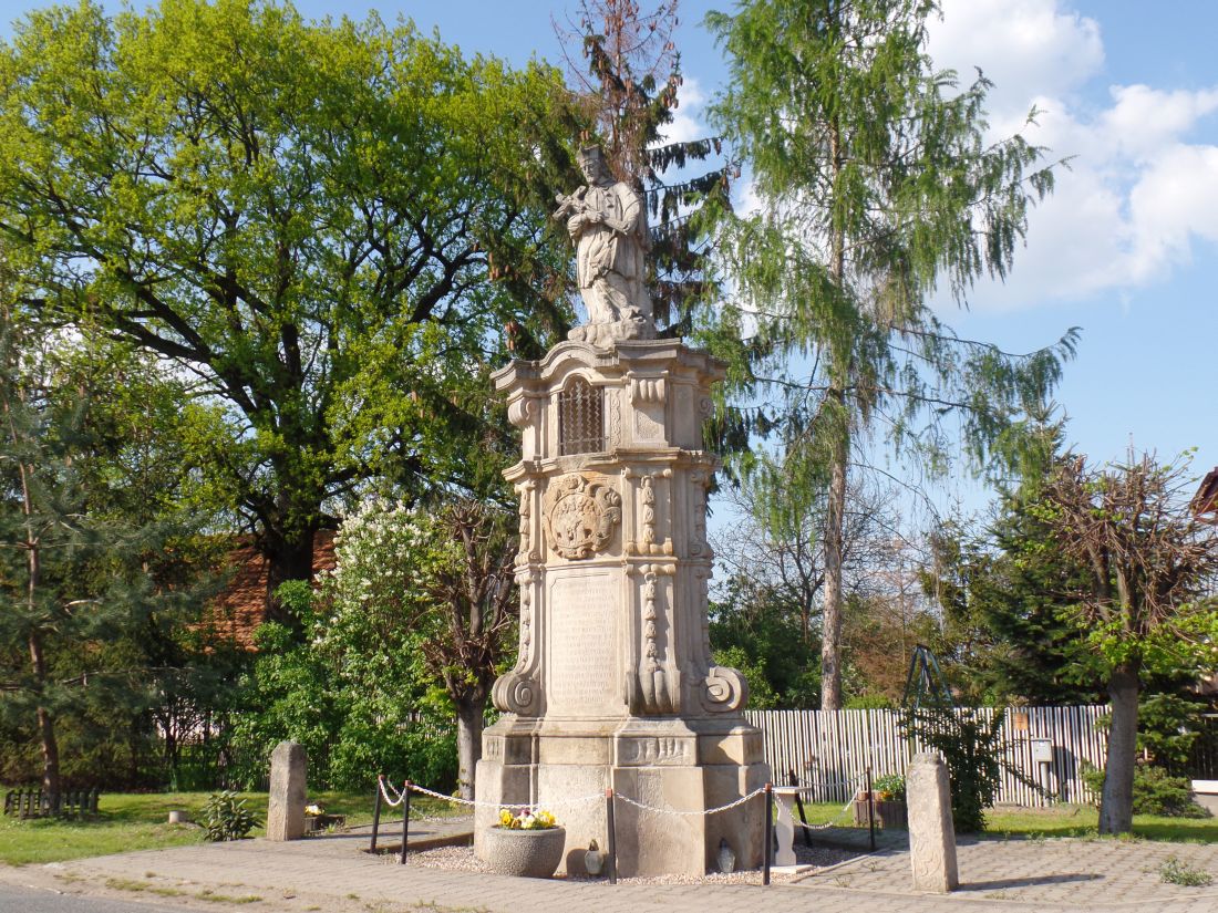 W miejscowości znajdują się ruiny pałacu zbudowanego w XVI w., należącego do rodziny Seidlitzów. W latach 1740-1744 przebudowano go na barokową rezydencję (prawdopodobnie wg projektu Christopha Hacknera). W 1850 r. pałac częściowo rozebrano, aby go odnowić i otynkować w 1935 roku. W tym stanie obiekt przetrwał 40 lat, kiedy to zawalił się fragment dachu. W poł. lat 80. XX w. mieszkała tu jeszcze jedna rodzina, natomiast dzisiaj zostały już tylko ruiny pałacu, a jedynym obiektem, który zachował świetność jest pomnik św. Jana Nepomucena. Ufundowali go ok. 1740 r. właściciele wsi, von Kalckreuthowie, a wyrzeźbił prawdopodobnie Johann Albrecht Siegwitz (autor Nepomucena z wrocławskiego pl. Katedralnego). Figura posiada rzadko spotykaną wnękę na lampkę oraz łacińską inskrypcję: "Co często nieżyczliwość, nienawiść i zazdrość wymyśli nagannego, a oprócz tego trucizna złych języków wyrządzi złośliwą szkodę naszej godności - odwróć przez swe wstawiennictwo. Spraw, aby ich złośliwe poczynania nie miały Twojego błogosławieństwa. Kto złośliwości zmyśla, przez nieprzyzwoite plotkarstwo poniża godność bliźniego. Spraw przez swoje wstawiennictwo i uwolnij nas od grzechu oraz występku, ponieważ życie w grzechu jest największym wstydem przed Bogiem".