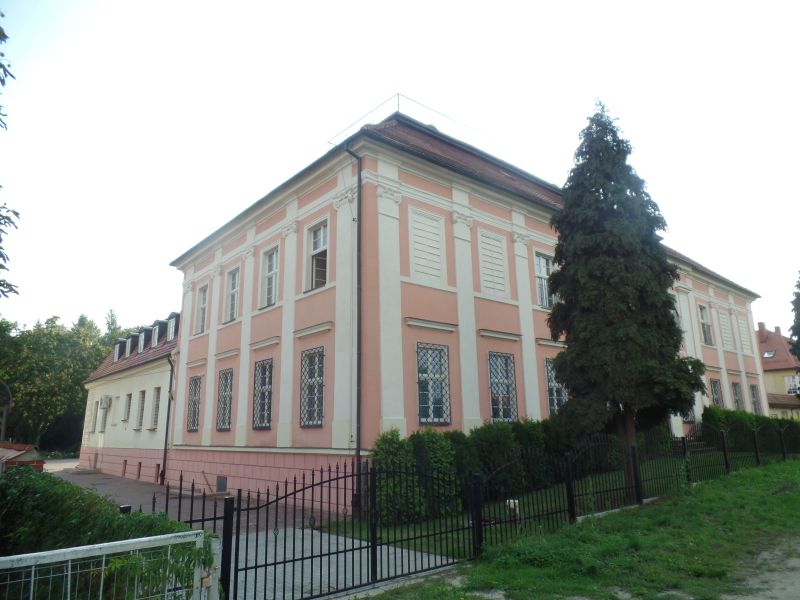 Po przeciwnej stronie drogi stoi pałac, który poprzedzała wieża rycerska. Przebudowy obiekty dokonał Hildebrandt Rudolf von Hund w 1730 r. i to właśnie jego kartusze herbowe znajdują się nad wejściem. Obecnie zespół wykorzystywany jest na potrzeby Zakładu Opiekuńczo-Leczniczego dla Dzieci Niepełnosprawnych Ruchowo.