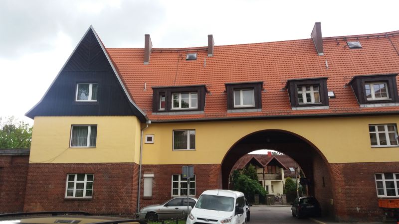 Przy elektrociepłowni powstał kompleks budynków mieszkalnych i administracyjnych o cechach architektury modernistycznej, z bramą przejazdową i furtą o półkolistych łukach. Pomimo że wybudowano je w różnych latach, to wszystkie posiadają ten sam styl. Szczególny nacisk położono na to, by wejścia do poszczególnych mieszkań były od siebie jak najbardziej oddalone. Na każdym piętrze znajdują się maksymalnie dwa mieszkania i każde posiada dwa lub trzy pokoje. Powierzchnia mieszkań wynosiła od 65 do 76 m², a wysokość od 2,9 m do 3,6 m. W każdym budynku po dwa mieszkania przewidziano dla rodziny inżynierskiej. Wszystkie mieszkania zakładowe miały bieżącą wodę (pompy elektryczne), kanalizację i oświetlenie elektryczne.