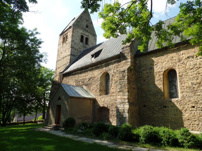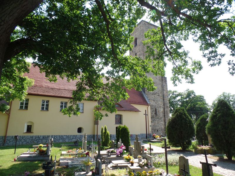 Kościół św. Stanisława Biskupa wzniesiono w 2. poł. XIII w. i jest on najstarszym świadectwem kultu św. Stanisława. Na portalu znajduje się Madonna z Dzieciątkiem i św. Stanisław. Na rewersie tympanonu odkryto w latach 60. XX w. scenę męczeństwa bp. Stanisława. Po bokach portalu wejścia strzegą dwa romańskie lwy, przeniesione tu prawdopodobnie z opactwa augustianów na Ślęży. Kawałek trzeciego lwa wmurowano we wschodnią część przedsionka. Wszystkie się uśmiechają. Z ok. 1500 r. pochodzi polichromia na stropie, zaś z ok. 1400 r. - kamienna chrzcielnica i malowidła na parapecie chóru. Na koniec XV w. datuje się szafę ołtarzową ze sceną zwiastowania, figury św. Stanisława i Wacława. Na zewnętrznych ścianach świątyni odnaleźć można ryte w kamieniu krzyże. Na parapecie loży darczyńców zachowały się dwa rzędy namalowanych ok. 1600 r. tarcz herbowych, tworzących genealogię rodu von Senitz. Dodatkowo na parapecie chóru muzycznego znajdowało się ponad 20 tarcz zaprzyjaźnionych i spokrewnionych z nimi rodów, jednak parapet ten został usunięty na początku lat 60.