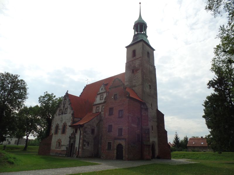 Obecny manierystyczny kościół wzniesiony został na zrębie dawnej gotyckiej świątyni z XIV wieku. Powstał w latach 1278 - 1335 i był przebudowywany w 2. poł. XIV wieku. Przypuszczalnie na ten okres można datować najstarsze fragmenty obecnej budowli, czyli prezbiterium, wieże i mury obwodowe nawy. Największe zmiany nastąpiły na początku XVII w. za czasów Adama Hanniwaldta. Kościół rozbudowano z dużym rozmachem, fundator zatrudnił wysokiej klasy rzemieślników i artystów, którzy wykonali wystrój i wyposażenie wnętrza. Część elementów sprowadzono z Rzymu i Pragi. Kościół stanowi bardzo cenny przykład architektury z początku XVII w. zarówno na Śląsku, jak i w całej Polsce. Przypisywana wrocławskiemu architektowi Hansowi Schneiderowi przebudowa uczyniła świątynię kompleksowym dziełem sztuki pod względem artystycznym, stylowym, ideowym i funkcjonalnym.